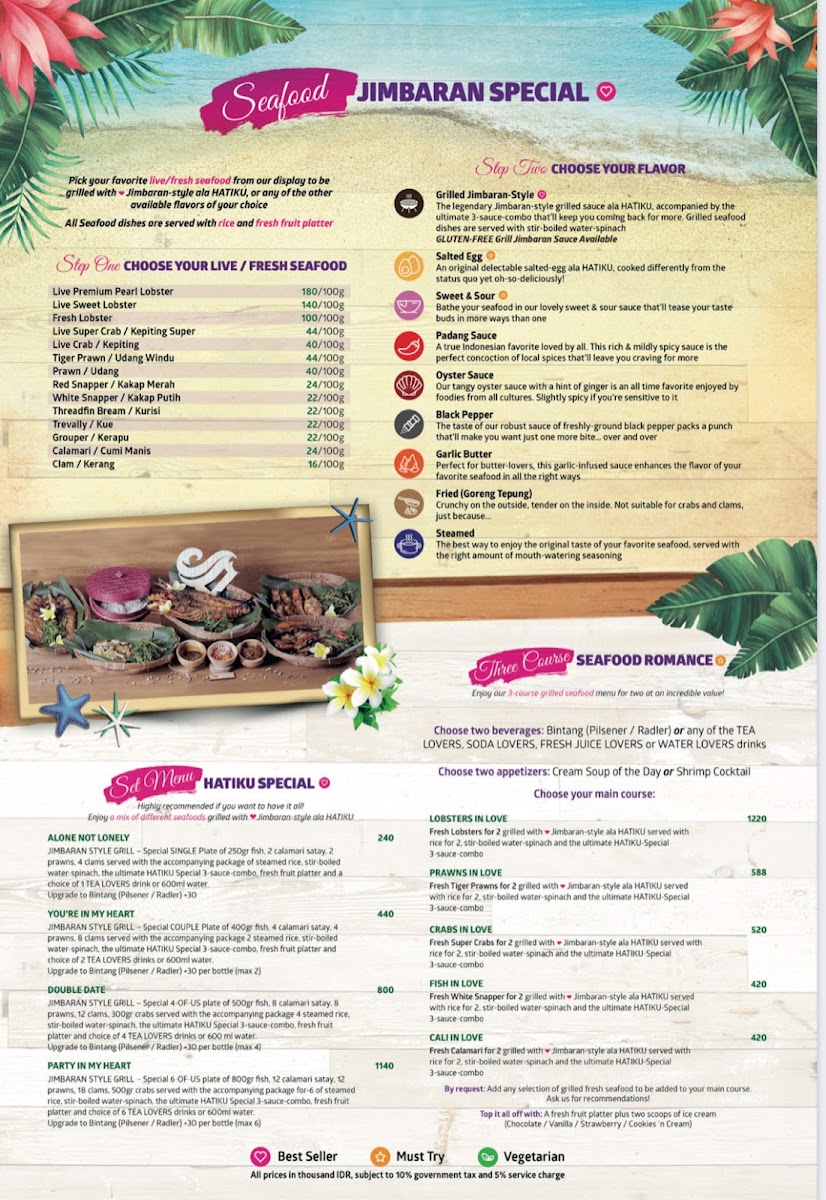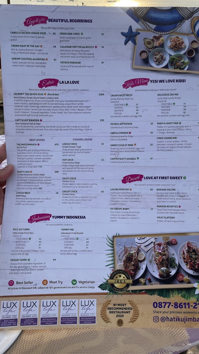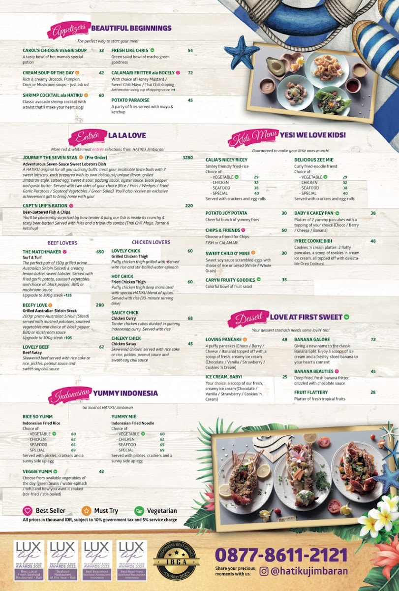 Set against the backdrop of golden sunsets and "toes-in-the-sand" seating, HATIKU Jimbaran combines exquisite cuisine with an immersive island ambiance. Warm hospitality and family-friendly options add to its charm, making it a must-visit for seafood lovers craving an unforgettable Balinese dining experience.